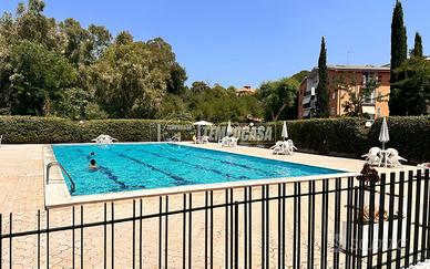 All'interno di un elegante comprensorio privato dotato di piscina condominiale e campo da tennis/calcetto, proponiamo in vendita un raffinato trilocale con ingresso indipendente disposto su due livelli, per una superficie complessiva di circa 110 mq. Al piano rialzato, l'ingresso si apre su un curato giardino pavimentato che conduce a una luminosissima veranda chiusa con vetrate a specchio, che garantiscono totale privacy, ideale come zona relax o pranzo, dotata di split per l'aria condizionata. Da qui, si accede sia tramite porta blindata che tramite ampia portafinestra scorrevole al salone con cucina a vista. Sempre su questo livello troviamo un bagno finestrato e una camera matrimoniale con accesso diretto al balcone che si affaccia sul secondo giardino privato della proprietà. Al piano inferiore si sviluppa una zona living più riservata composta da un secondo salottino con camino, un secondo bagno finestrato e una camera da letto supplementare. Questo piano ha accesso diretto all'ampio box auto privato, incluso nella proprietà, oltre a un posto auto scoperto di pertinenza. L'immobile si presenta in ottime condizioni interne, con infissi in PVC/legno dotati di doppi vetri, inferriate e zanzariere, impianto di riscaldamento autonomo. Compreso nel condominio consumo dell'acqua. Una soluzione ideale per chi cerca tranquillità, privacy e servizi esclusivi a portata di mano e allo stesso tempo la comodità di tutti i servizi di prima necessità a portata di mano, essendo situato in un punto strategico di Casalotti. - Classe: F