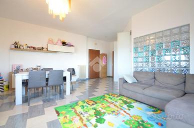 Al quinto ed ultimo piano di una palazzina sulla Strada Parco luminoso appartamento di 96 mq interni composto da un comodo soggiorno, cucina abitabile, due camere e un bagno con vasca e finestra.