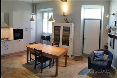 Delizioso appartamento indipendente composto da ingresso e soggiorno open space con cucina a vista completa di tutti gli elettrodomestici, disimpegno e bagno con lavatrice e asciugatrice; al piano di sopra una camera con balconcino esposto a nord, bagno zona notte e camera open soppalcata. Fotovoltaico spese elettricità ridotte Posto auto Solo referenziati Libero da giugno