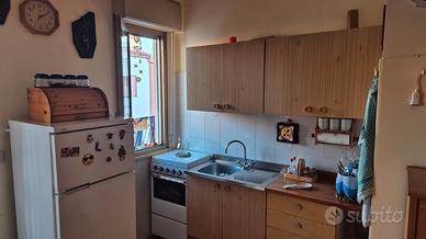 Cucina attrezzata e frigorifero con freezer.