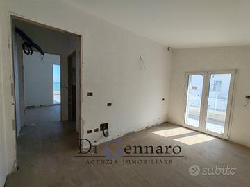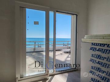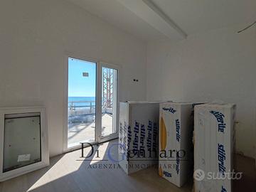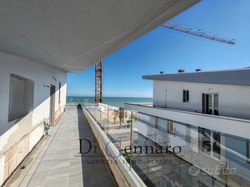L'appartamento proposto nell'annuncio si trova al terzo ed ultimo piano ed al suo interno gli ambienti sono così distribuiti: ingresso su ampia zona giorno con cucina a vista, disimpegno, bagno finestrato con doccia e due camere da letto. Il punto forte dell'appartamento è sicuramente il grande terrazzo di oltre 70 mq esposto ad est, da cui poter ammirare una splendida vista sul mare e sul litorale, uno spazio prezioso e unico nel suo genere che conferisce grande valore all'appartamento stesso.