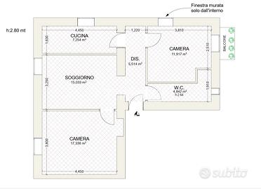 La soluzione si compone di ingresso su corridoio, bagno finestrato, due camere da letto matrimoniali di cui una con balcone con affaccio interno, cucina separata semi abitabile e un'ampia zona giorno luminosa e accogliente.