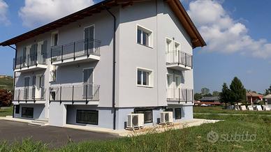 Ingresso su soggiorno con cucina open space e accesso a ampio balcone