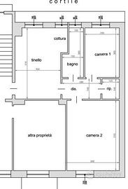 Ampio e luminoso trilocale in palazzina di 2 piani: ingresso living, cucina con balcone, 2 camere (una con cabina armadio), bagno finestrato con doccia in muratura e ripostiglio.