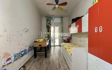 Il corridoio conduce alla zona notte: sulla destra, un bagno finestrato dalle generose dimensioni, completo di box doccia e predisposto per accogliere la lavatrice. Seguono la cameretta, anch'essa con accesso al terrazzo, e la camera matrimoniale, resa luminosa da una porta finestra che apre su un secondo balcone privato.
