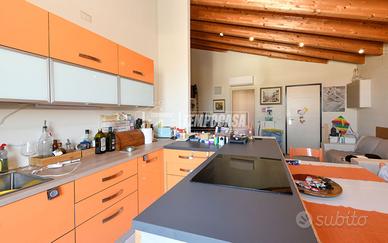 Nel cuore di Moniga del Garda, in posizione centrale e comoda a tutti i servizi, proponiamo in vendita un elegante trilocale di 90 mq situato al secondo e ultimo piano con ascensore, all'interno di un residence con piscina. L'appartamento, edificato nel 2005 e in ottime condizioni, conquista subito con il suo ampio e luminoso soggiorno con cucina a vista, un ambiente arioso e accogliente dove vivere e ricevere con piacere. Le travi in legno a vista donano calore e carattere, creando un'atmosfera raffinata e rilassante. La zona notte comprende una camera matrimoniale, una camera singola e un bagno. Inoltre un comodo soppalco aggiunge spazio e versatilità. Due i balconi: uno con splendida vista lago, ideale per colazioni o aperitivi con panorama mozzafiato, e l'altro perfetto per uso quotidiano. Completano la proprietà un garage privato e tutti i comfort di un residence curato con piscina. Una soluzione ideale per chi cerca spazi generosi, luminosità e vista lago, in un contesto riservato ma a due passi dal centro e dal lago.