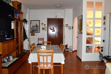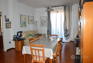 A pochi passi dal centro, vista mare, proponiamo in vendita luminoso trilocale di mq. 95,00 circa al piano primo di un condominio costituito da otto unità abitative. L'appartamento ospita un ampio ed accogliente soggiorno con balcone, una cucina abitabile a vista dotata di ripostiglio con attacco della lavatrice, disimpegno notte, due camere matrimoniali con affaccio sul balcone e bagno con doccia. Dalla cucina, si accede alla corte esclusiva di mq. 63,00 circa, completamente pavimentata, ideale per i tuoi momenti di relax e convivialità in compagnia di parenti ed amici. La proprietà include inoltre una spaziosa cantina di mq. 13,00 al piano terra ed un garage di mq. 18,00 al piano S1.