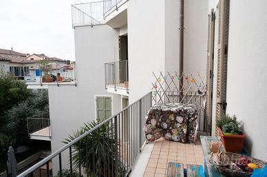 Rif. V0570 Vendesi appartamento di circa 85 mq. su due livelli al secondo piano con ascensore di palazzina residenziale completamente ristrutturata, composto al primo livello da ingresso disimpegno, salone, cucina separata con balcone, 1 bagno con balcone, al secondo livello sottotetto collegato con comoda scala 1 camera matrimoniale , 1 camera singola, completa la proprietà una cantina. Appartamento ben rifinito con travi a vista in lamellare e pavimenti in parquet. Comoda posizione tra il centro e il mare. Prezzo poco trattabile. APE in fase di realizzo. Per informazioni e visita Paolo.