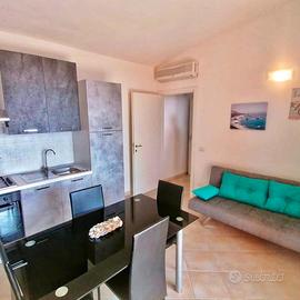 Si compone di ingresso su spazio all'aperto coperto e riservato dove vi è lo spazio sia per tavolo che per il divanetto, che ci conduce all'open space col living e zona cottura, camera da letto e servizio.