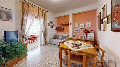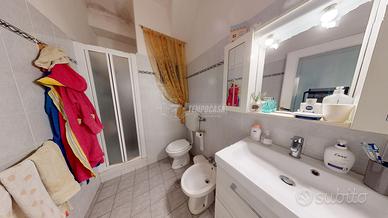 L'immibile è cosi' disposto: ingresso in disimpegno, due camere da letto, soggiorno, bagno con sanitari poggiati e box doccia, cucina abitabile e lavanderia - ripostiglio.
