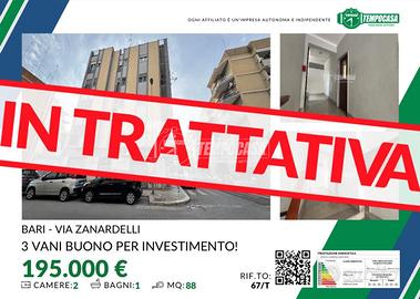 Nel servitissimo quartiere San Pasquale, a pochi passi dalla STAZIONE, dal CENTRO e dal POLITECNICO ( CAMPUS ), la Tempocasa di Bari Carrassi San Pasquale propone in vendita, in via GIUSEPPE ZANARDELLI un trivani in buono stato.