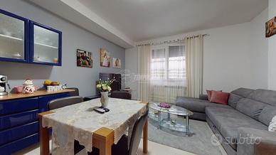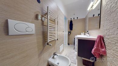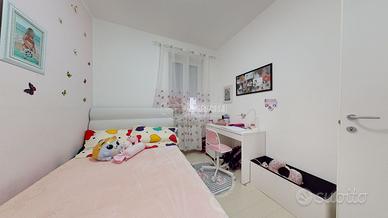 L'immobile sviluppa una superficie interna di 72 mq ed è così disposto: ingresso in ampio disimpegno, zona giorno open space luminosa, bagno completo con box doccia in cristallo e zona lavanderia. Proseguendo, si accede alla zona notte composta da una camera matrimoniale con portafinestra e accesso diretto al balcone di pertinenza di circa 8 mq, oltre a una cameretta singola.