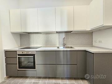 L'appartamento è composto da: ingresso-soggiorno, cucina arredata (piano di cottura ad induzione, forno, lavastoviglie), disimpegno, camera da letto, cameretta, bagno.