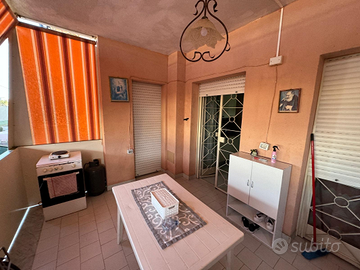 ampio balcone di cui sono presenti tende da sole con angolo lavatrice e pilotato, infissi in alluminio bianchi con vetro camera , pavimento in gres porcellanato, porte color noce chiaro , l immobile si trova vicinissimo a scuole medie , asilo