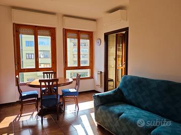 L'immobile che proponiamo in locazione si trova al quinto e ultimo piano di un elegante condominio con esterni appena ristrutturati e dotato di ascensore. Trattasi di un trivano parzialmente ristrutturato e interamente arredato.