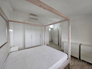 L'immobile dispone di due bagni, uno dedicato alla zona giorno e uno riservato alla zona notte. Le camere da letto sono due: una matrimoniale impreziosita da una comoda cabina armadio, e una camera doppia con accesso diretto al balcone.