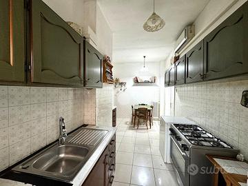 NUORO - In via Velio Spano, in zona residenziale tranquilla e servita, ampio appartamento trivano con cantina. La soluzione, posta al terzo piano, si sviluppa su un unico livello e vanta tre lati di esposizione. Con ingresso dal vano scala condominiale, utilizzando uno a scelta tra scale e ascensore, si arriva all'ingresso dell'immobile. Varcata la soglia si viene accolti da un ampio spazio d'ingresso che collega tutti gli ambienti principali della casa. Internamente, l'immobile, presenta una luminosa zona giorno con cucina separata, entrambi con balcone, da cui si può godere di una buona vista panoramica. La zona notte è formata da un'ampia camera da letto, una seconda camera di buone dimensioni, e un bagno completo di doccia e finestrato. A completare la soluzione, un comodo vano cantina. L'immobile si presenta in stato originale ma discretamente tenuto, è completamente riscaldato da impianto autonomo a radiatori e viene venduto arredato.