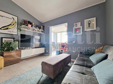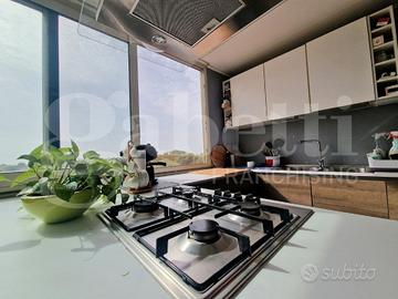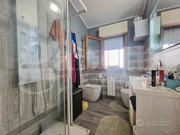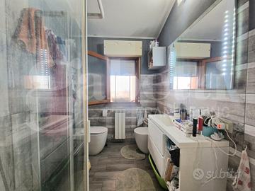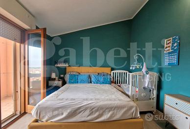 La zona notte è composta da due accoglienti camere da letto: una spaziosa camera matrimoniale con veranda panoramica che offre una vista mozzafiato sul paese e una cameretta singola con accesso a una seconda veranda. Il bagno, completo di box doccia, garantisce funzionalità e comfort.