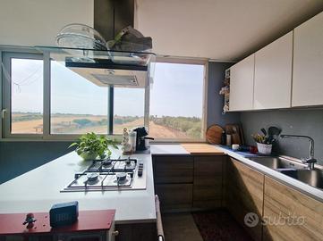 L'immobile, costruito nei primi anni 2000, si presenta in ottime condizioni abitative, pronto per accogliere i suoi nuovi proprietari. L'ingresso si apre su un luminoso soggiorno singolo, mentre il cucinino separato offre una vista suggestiva sulle campagne circostanti, regalando momenti di relax e tranquillità. La zona notte è composta da due accoglienti camere da letto: una spaziosa camera matrimoniale con veranda panoramica che offre una vista mozzafiato sul paese e una cameretta singola con accesso a una seconda veranda. Il bagno, completo di box doccia, garantisce funzionalità e comfort. L'appartamento viene venduto completo di arredi, tra cui mobile cucina, parete attrezzata per la TV, armadio e cassettiera, offrendo la possibilità di entrare e abitare senza dover preoccuparsi di ulteriori acquisti. Inoltre, è dotato di due climatizzatori, uno da 12.000 e uno da 6.000 BTU, e di una caldaia elettrica, garantendo il massimo comfort in ogni stagione. L'impianto di riscaldamento a termosifoni è già predisposto, assicurando un ambiente caldo e accogliente anche nei mesi più freddi.