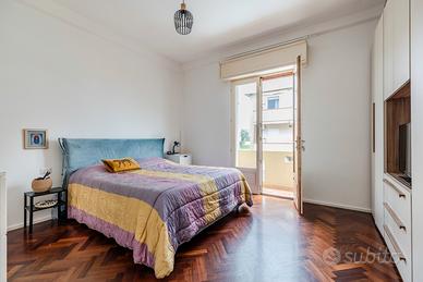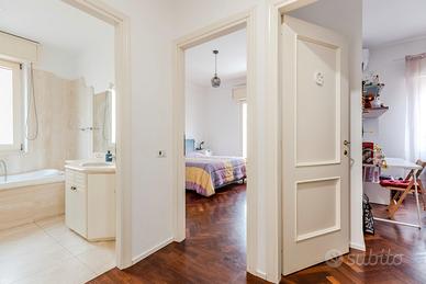 La zona notte comprende un bagno completo di vasca e doccia, due camere matrimoniali (17 mq e 14,30 mq) e un secondo balcone con esposizione a est.