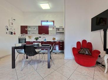 L'ingresso principale conduce a un ampio soggiorno luminoso, caratterizzato da una cucina a vista ben integrata nello spazio. Dal soggiorno si accede alla veranda esterna vivibile, perfetta per momenti di relax all'aria aperta.
