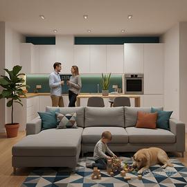 Pirri. via Riva Villasanta angolo con via Legnano: appartamento di 94 mq al piano terra di tipologia trivano. L'immobile si compone di ingresso nell'ampio soggiorno con angolo cottura con doppia finestra, camera da letto matrimoniale con porta finestra, camera da letto singola con ampia finestra, bagno finestrato e rispostiglio. Attualmente l'immobile è in fase di ristrutturazione , saranno realizzate le predisposizioni per le pompe di calore in tutti gli ambienti. Le immagini riportate sono dei rendering, solo la planimetria rispecchia la realtà.