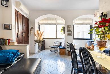 Composto da salone, cucina a vista, camera matrimoniale, camera singola, bagno, disimpegno, ripostiglio. La casa è stata ristrutturata negli anni '90, si trova al terzo piano senza ascensore ma il vano scala permette l'istallazione dell'ascensore, attualmente in fase di studio di realizzazione.