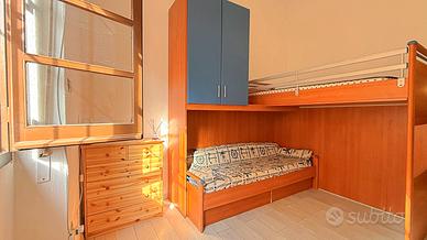 Sempre nel disimpegno abbiamo le due camere da letto, una matrimoniale di ampie metrature e una singola con letto a castello con tre posti letto.