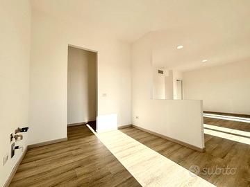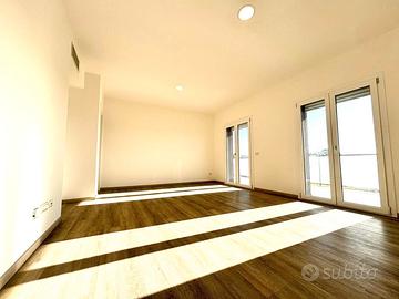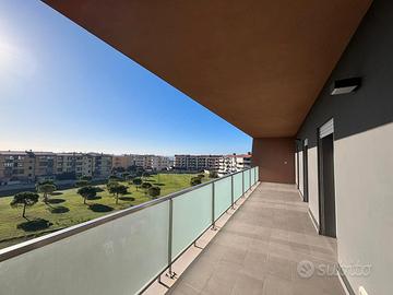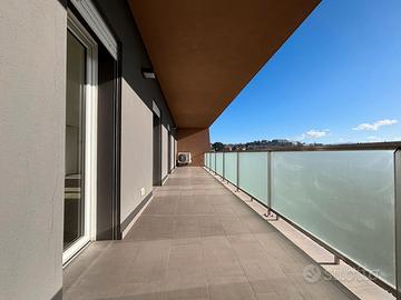 L'immobile internamente è composto da ingresso su ampio soggiorno con uscita diretta sulla terrazza a livello panoramica su parco arredabile con arredi da esterno, cucina con zona dispensa, disimpegno, cameretta, primo bagno con sanitari e lavandino e areazione forzata oltre camera matrimoniale con annesso bagno padronale finestrato . Un elemento distintivo è l'ampia doccia posizionata nel disimpegno, separata dai bagni, che aggiunge praticità e comfort alla disposizione interna. Completa la proprietà una cantina al piano terra e un posto auto scoperto nel cortile condominiale. Costo del rateo condominiale mensile ? 80 00 non incluso nell'importo della locazione.