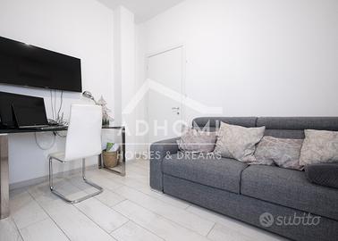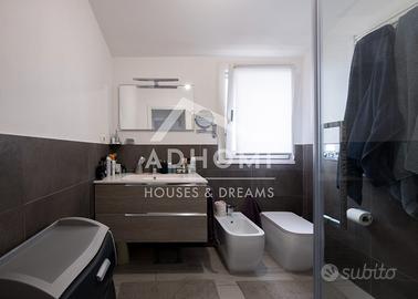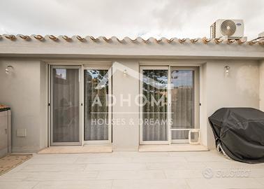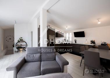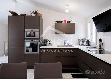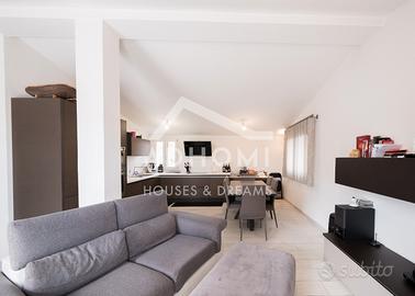 Al piano superiore, collegato da scala interna, troviamo la zona giorno luminosa con angolo cottura e ampia terrazza a livello, camera matrimoniale, bagno, ripostiglio e cabina armadio.
