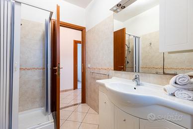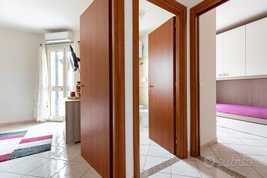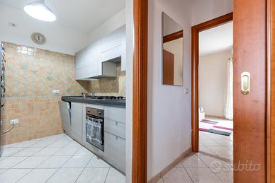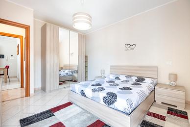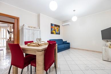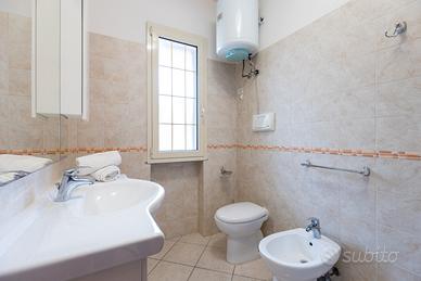 L'appartamento si trova al primo piano di piccola palazzina di sole tre unità, è costituito da una prima veranda arredabile da cui si accede al soggiorno, da un cucinotto, disimpegno, le due camere da letto, bagno con doccia e da un'altra veranda sul retro con annessa zona lavanderia.