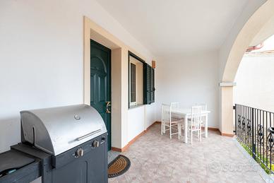 L'appartamento si trova al primo piano di piccola palazzina di sole tre unità, è costituito da una prima veranda arredabile da cui si accede al soggiorno, da un cucinotto, disimpegno, le due camere da letto, bagno con doccia e da un'altra veranda sul retro con annessa zona lavanderia.