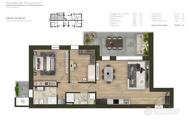 A Trivignano, zona verde, comodissima a Mestre, ma fuori dal caos cittadino, proponiamo in vendita su prenotazione, appartamento servito da ascensore, posto al primo piano (possibilità di scelta del piano), appartamento con zona linving open space con ampia vetrata su terrazzo abitabile di ca. 18 mq., due camere da letto, due bagni, altro poggiolo e garage al piano terra.