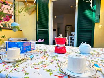 Grazioso bilocale ristrutturato con ampia terrazza di 25 mq arredata. Composto da camera matrimoniale, bagno con box doccia, ampio soggiorno con cucina moderna e accesso diretto alla terrazza. ? Dotazioni: lavastoviglie, lavatrice, forno, ferro da stiro, climatizzazione caldo/freddo in ogni stanza. Situato nel Borgo degli Erchi, complesso privato a 1 km dal mare, con parcheggio condominiale e accesso con sbarra automatica. 750 euro/ mese (novembre, dicembre) Per informazioni e prenotazioni visita: 329 222 5143