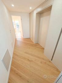 Udine, Viale della Vittoria, in signorile condominio edificato su progetto del noto Architetto Avon, dotato di servizio portineria continuativo H24, proponiamo in vendita prestigioso appartamento bicamere biservizi da 110 mq completamente ristrutturato nel 2026, posto al quarto piano e servito da ascensore. L'atrio d'ingresso ci svela la zona giorno, composta dalla cucina abitabile con veranda ad uso lavanderia e un'accogliente e luminosa zona living, impreziosita da ampie vetrate e dotata di accesso alla terrazza abitabile finemente rifinita, dalla quale si gode di una splendida vista panoramica sulla città e sul Castello di Udine. La zona notte, caratterizzata da una pavimentazione in rovere naturale, ospita due camere matrimoniali di 15 mq e doppi servizi, entrambi rifiniti con materiali dal design ricercato (rubinetteria Fantini, sanitari Flaminia, lavabo freestanding Antonio Lupi), specchi retroilluminati con diffusione audio integrata e sistema antiappannamento. Al piano interrato una cantina e un ampio garage di 19 mq, facilmente accessibile anche per auto di grandi dimensioni. L'immobile è stato oggetto di una ristrutturazione integrale, eseguita con l'impiego di materiali di alta qualità, come la realizzazione di isolamento termico con cappotto in Aerogel, l'installazione di infissi in triplo vetro, la realizzazione di impianti di nuova generazione, dotati di sistema Smart, per una semplice gestione da remoto di luci e tapparelle. L'immobile è dotato di un impianto di climatizzazione canalizzato Daikin con diffusori dedicati e regolabili in ogni ambiente. ll riscaldamento è centralizzato, con caldaia a condensazione recentemente sostituita e valvole termostatiche con contacalorie, le spese di condominio ammontano a circa 155 euro al mese e comprendono compenso amministratore, assicurazione dello stabile, servizio di portineria, luce, pulizia e manutenzione delle parti comuni, giardinaggio, manutenzione ordinaria ascensore e quota fissa riscaldamento.