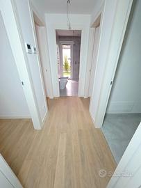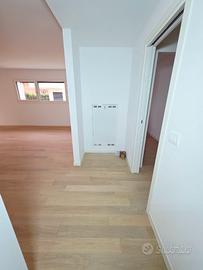La zona notte ospita le tre camere da letto (di cui una matrimoniale con bagno padronale) e servite da un secondo bagno finestrato. Gli ambienti sono impreziositi da una pavimentazione in parquet di rovere naturale e gres porcellanato. L'appartamento è completato dalla cantina e dal garage al piano interrato.