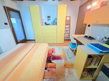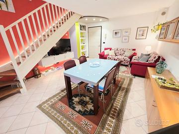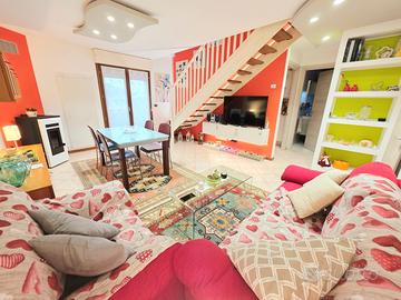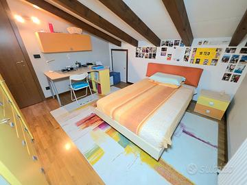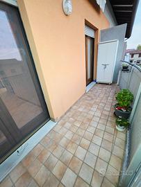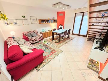 CERCHI UN BICAMERE A UDINE NORD CON UN'ALTA CLASSE ENERGETICA? NON FARTI SCAPPARE QUESTA OPPORTUNITA'! UDINE NORD, via Emilia. In piccolo contesto di sole 8 unità abitative, proponiamo in vendita appartamento bicamere biservizi disposto su due livelli sito al secondo piano di una palazzina costruita negli anni 2000 dotata di cappotto termico. L'immobile ha raggiunto un'ottima Classe Energetica "B", essenziale per accedere ai Mutui Green, grazie all'installazione di: impianto solare termico nel 2014; impianto fotovoltaico con batterie di accumulo nel 2024; sostituzione vetrocamere serramenti a basso emissivo, che consentono un alto isolamento sia termico che acustico, nel 2024. L'ingresso è diretto nella zona living separata, tramite il disimpegno, dalla cucina abitabile, entrambi con accesso alla terrazza esposta a Sud e serviti da un bagno finestrato. Attraverso un'elegante scala in legno dotata di illuminazione notturna, accediamo al piano superiore, caratterizzato da travi a vista e impreziosito da pavimenti in parquet, dove troviamo le due camere da letto, una terrazza ed il secondo bagno. La parte non abitabile del piano superiore, adiacente a ciascuna camera da letto, è utilizzabile come ripostiglio. La proprietà è completata, al piano terra, da una cantina finestrata, dal garage e da un posto auto scoperto. L'appartamento è dotato di climatizzazione installata nel 2024, il riscaldamento è autonomo e le spese condominiali ammontano a circa 64 euro al mese e comprendono compenso amministratore, assicurazione dello stabile, illuminazione, pulizia e manutenzione delle parti comuni e quota fissa d'acqua fredda. La zona é ben servita, nelle immediate vicinanze troviamo supermercati, farmacia, e le fermate della linea bus n. 7. Facilmente raggiungibili, l'Ospedale Civile, le scuole, il centro commerciale "Terminal Nord" e l'accesso alla Tangenziale.