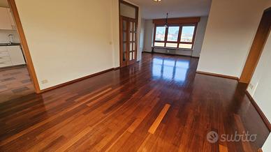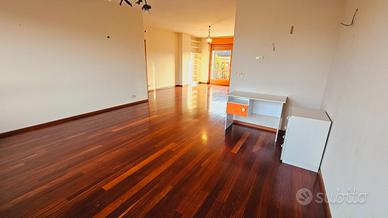L'ingresso ci conduce ad un ampio e luminoso soggiorno da 40 mq con uscita sulla terrazza esposta a Sud e alla cucina separata abitabile. Il disimpegno ci accompagna alla zona notte dove troviamo le due camere da letto matrimoniali servite da due bagni finestrati, uno con doccia e uno con vasca.