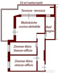 Trattasi di un ufficio al 3° e penultimo piano. Progettato ed attrezzato come se fosse un appartamento. Ideale per un libero professionista, un imprenditore o un uomo d'affari. Forse stai attualmente affittando, quindi il leasing sarebbe un'ottima opzione, soprattutto perché le rate del leasing possono essere completamente detratti dalle tasse. L'edificio, una casa clima A, è stato costruito pochi anni fa. L'intero ufficio/appartamento è dotato di riscaldamento a pavimento. Nel prezzo di acquisto sono compresi un garage ed una cantina. La consegna può avvenire a breve. Posizione: L'edificio si trova all'interno della Viale Druso in posizione tranquilla. La consegna può avvenire anche con i mobili.
