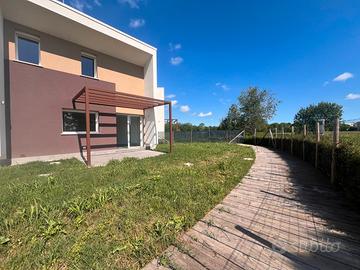 MOGLIANO VENETO - PRONTA CONSEGNA - Zona residenziale signorile e curata - Nuova villa di testa con eccellente esposizione e sita in tranquillissimo contesto, composta da ingresso, ampio salone con cucina open space luminosissima, disimpegno, bagno e garage comunicante con l'abitazione. Al piano primo tre comode camere con pavimentazione in pregiatissimo parquet di rovere, doppi servizi e ampia terrazza di circa 30 mq. Completa la proposta il giardino privato di circa mq. 300 e pergolato ideale per le cene estive. L'immobile è provvisto di ventilazione meccanica in tutti i locali compresi i bagni, impianto di raffrescamento in tutte le camere e soggiorno, impianto di allarme volumetrico e perimetrale, impianto fotovoltaico da 6 Kw e cancello carrabile elettrico. Cl. En A4 Epgl, nren 16,08 kWh\mq anno. €. 465.000,00. Rif. 50