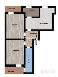 Internamente è composto da: ingresso, luminoso soggiorno, cucina abitabile con uscita sul balcone, disimpegno zona notte, camera matrimoniale con uscita sul balcone, camera e bagno finestrato con box doccia e uscita sul balcone.