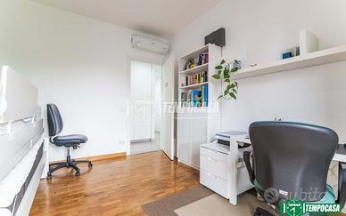 Passato il disimpegno, arredato con ottimi armadi su misura che consentono di sfruttare a pieno lo spazio, si raggiunge la zona notte con due camere matrimoniali e una camera singola, ideali per chi desidera ambienti versatili o per chi lavora da casa.
