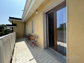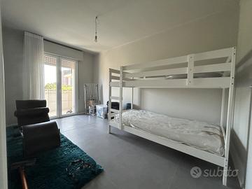Si tratta di un tricamere di mq. 100 al terzo ed ultimo piano, composto da una zona giorno open space con accesso al terrazzo dotato di tenda elettrica, disimpegno con armadiatura, due camere doppie abbondanti, un bagno finestrato con doccione ed un'ampia camera matrimoniale con ulteriore terrazzo.