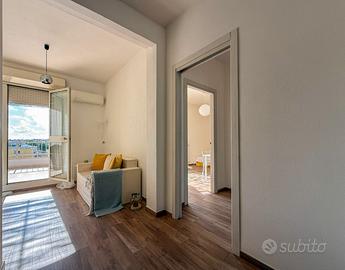 Zona giorno open space con cucina e soggiorno, in affaccio diretto sulla terrazza panoramica: lo spazio perfetto per rilassarsi e vivere momenti di convivialità con amici e parenti.