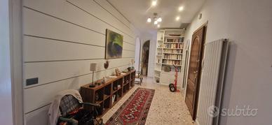 Venezia S Elena, comodo ai mezzi pubblici secondo e ultimo piano affacciato su campo immerso nel verde luminosissimo, restaurato secondo piano ampio ingresso, salone con con quattro finestre e poggiolo, cucina adiacente arredata, tre camere, doppi servizi e ripostigli, al terzo piano studio e camera matrimoniale con bagno con doppio ingresso dal vano scale.