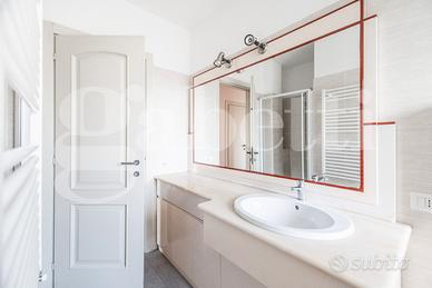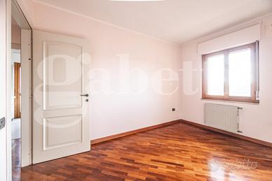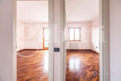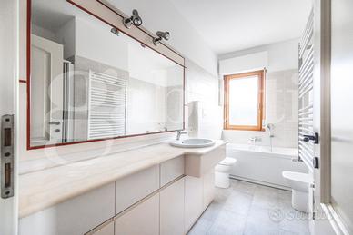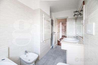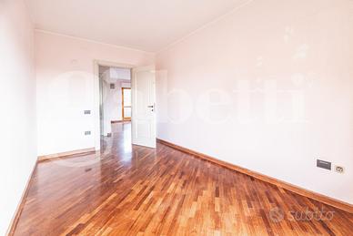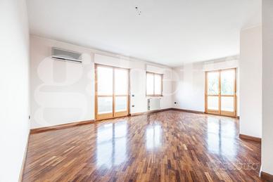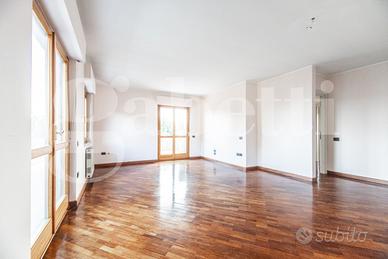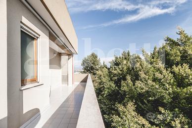 Si compone da ingresso su salone doppio come spazio ampio multi-funzione con presenti ben due porte finestre con sfogo sul terrazzo abitabile angolare e una finestra che garantiscono ricambio d'aria e grande luminosità, cucina abitabile e separata dalla zona living con anch'essa porta finestra e finestra, 3 spaziose camere da letto, 2 bagni recentemente ristrutturati( 3 anni fa ) ed entrambi finestrati, uno con finestra e il servizio con porta finestra, disimpegno, cabina armadio, seconda terrazza prospetto posteriore panoramica