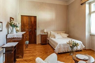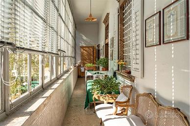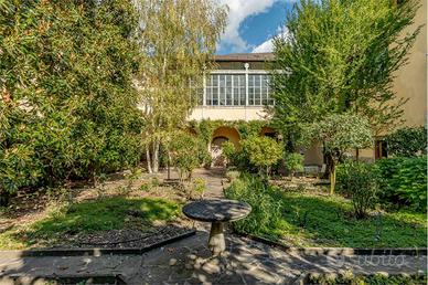 Lingresso principale, situato al primo piano, conduce allinterno di una residenza di grande pregio, caratterizzata da elementi storici e dettagli raffinati. L'appartamento si compone di quattro stanze da letto, bagno finestrato, cucina abitabile, sala da pranzo e salotto decorati con eleganti affreschi su pareti e soffitti. Tutte le stanze si affacciano sulla loggia da cui si può ammirare il giardino all'italiana.