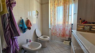 L'appartamento dispone di tre camere matrimoniali, offrendo ampio spazio per tutti i membri della famiglia. Inoltre, c'è un bagno funzionale e la possibilità di frazionare l'immobile in due unità, rendendolo un'opzione interessante per investitori o per chi desidera ospitare amici e parenti. La proprietà include anche un garage in comproprietà (quota 1/3), una cantina e armadi a muro per ottimizzare gli spazi. Impiantistica a norma, dotato di clima, e stufa a pelet oltre che di caldaia nuova intercambiabili per il riscaldamento dell'appartamento.
