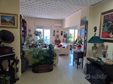 Un salone doppio luminosissimo con veranda fronte mare accoglie la zona giorno con attigua cucina abitabile con ripostiglio, mentre la zona notte offre tre ampie camere, una camera adibita a zona lavanderia, due bagni e spazi di servizio ben organizzati; doppio ingresso con zona giorno e zona notte disimpegnati.