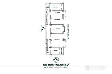 Attualmente accoglie un ampio ingresso, un luminosissimo salone, tre camere, cucina, bagno con vasca, bucataio e due ripostigli.